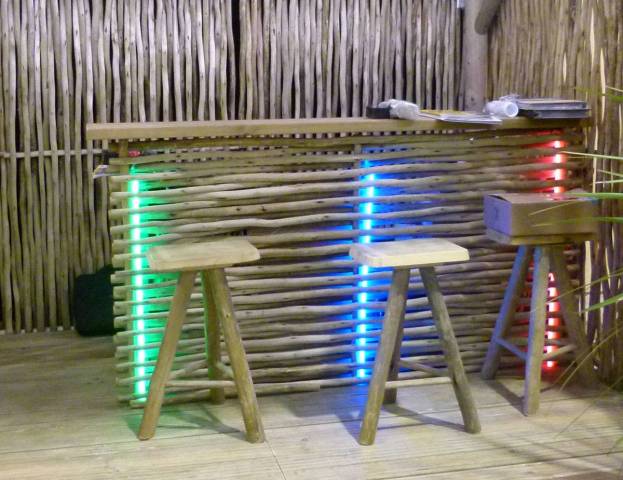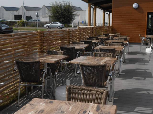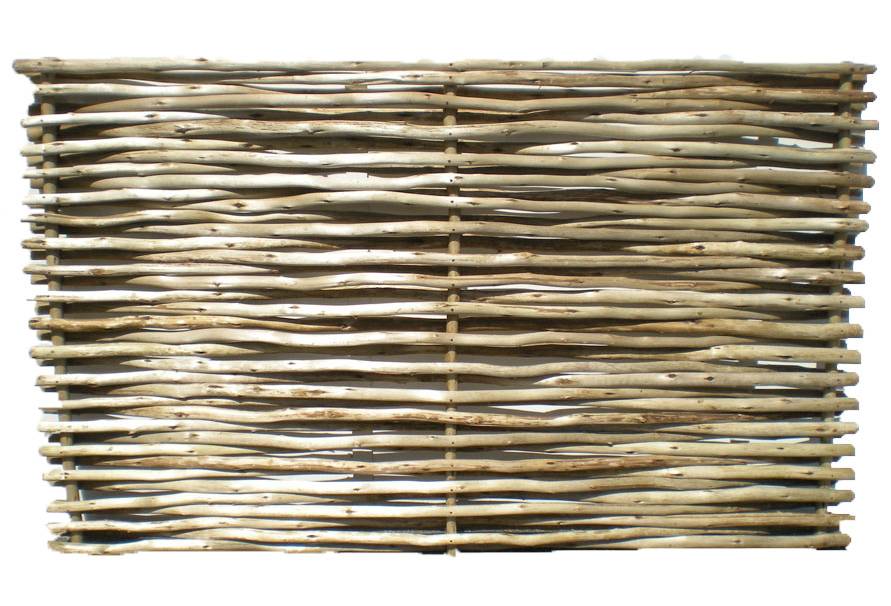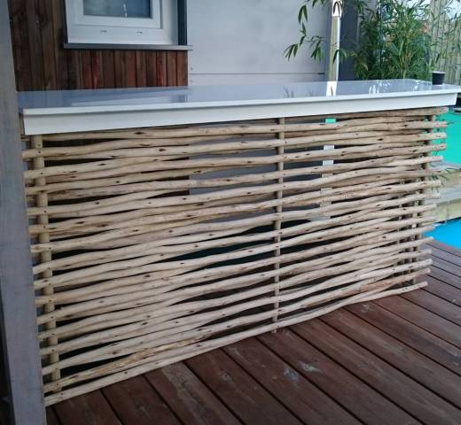 Brise-vue en rondins naturels d'eucalyptus tressés.
