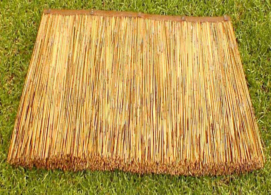 Carton de 4 tuiles longues de roseau naturel avec 6 clips pour rénover vos parasols 2 M ECO XL ou pour couvrir un nouvel abri. Prévoir 2 tuiles par m².