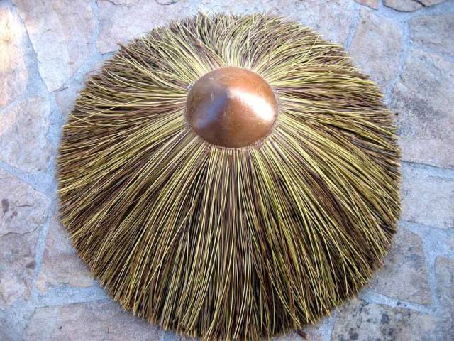 Roseau mixte : paille pleine sur le dessous et fibres synthétiques imitant le roseau naturel sur le dessus. Le cône dure entre 12 et 15 ans et ne grise pas.
