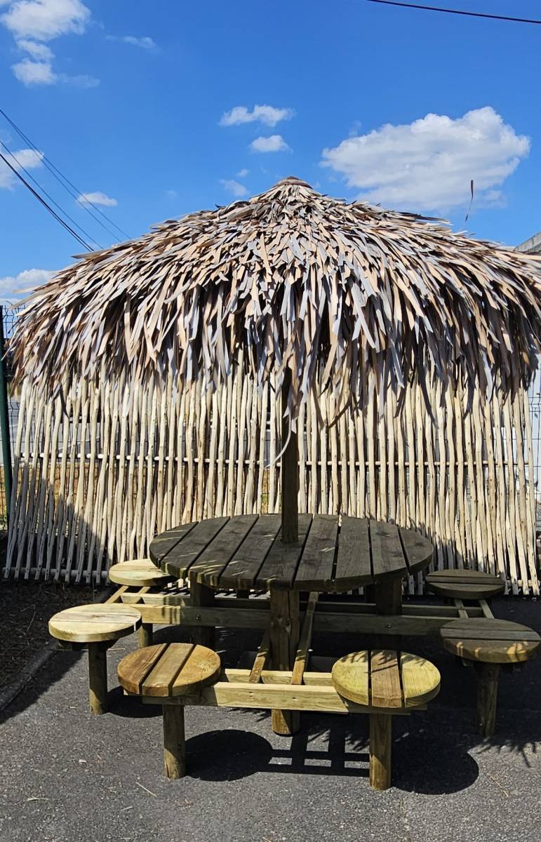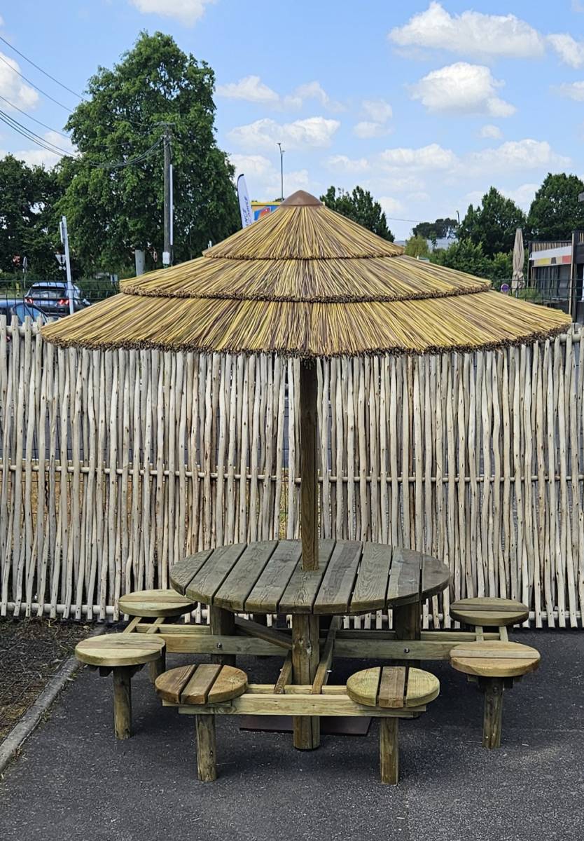 Parasol exotique Ø 2,30 m avec mât Ø 80 mm x 3000 mm à sceller au sol ou à fixer dans un socle en option 250/8/80 à visser ou 600/15/80 autoportant.