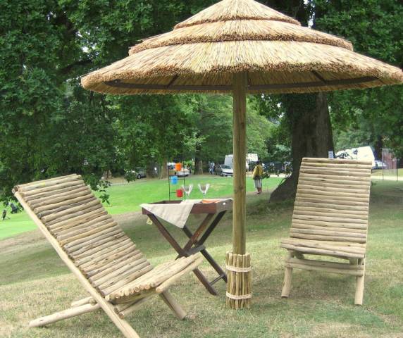 Fauteuil à palabres en rondins d'eucalyptus.