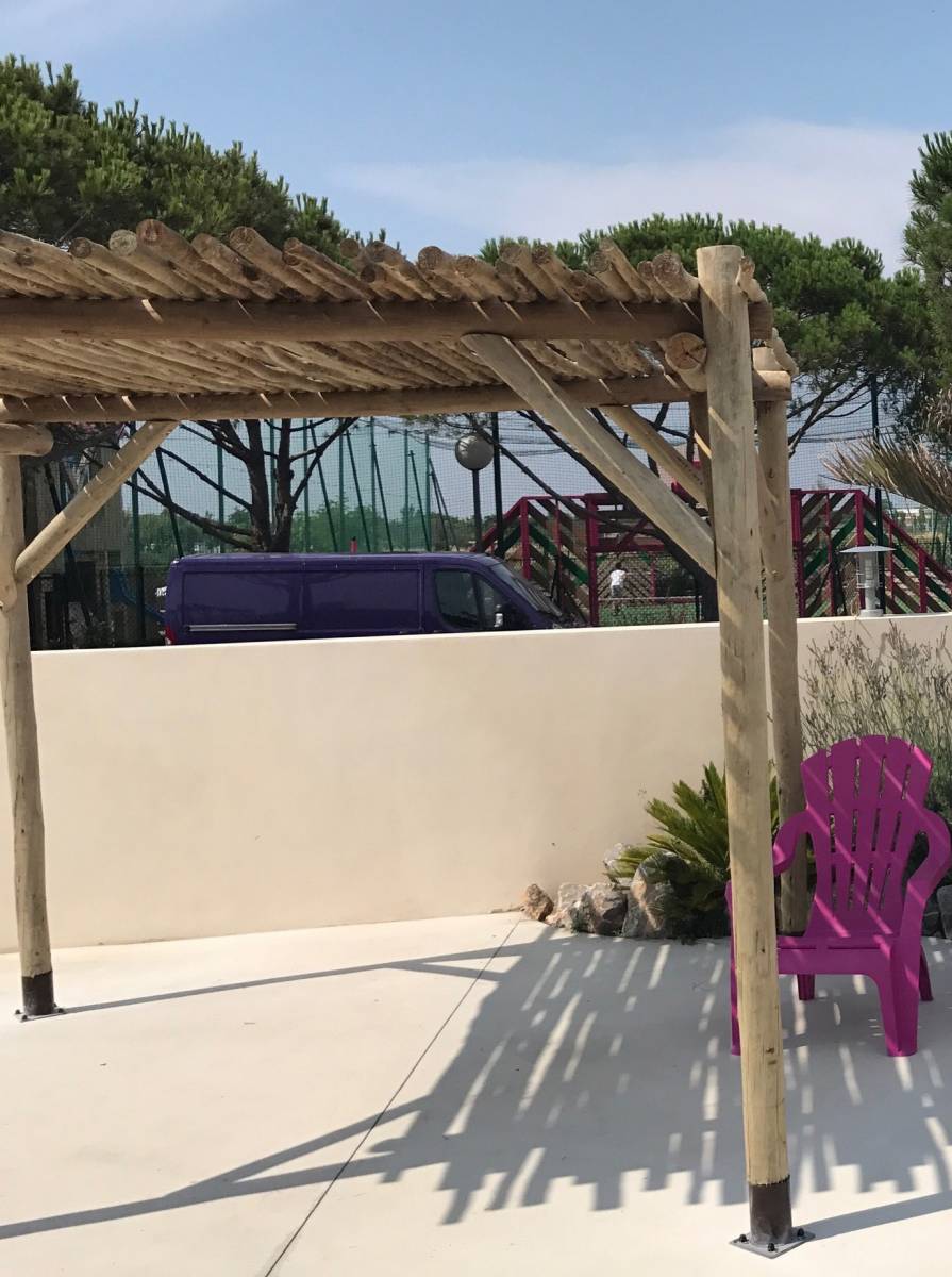 Pergola lapa en rondins d'eucalyptus, livrée en kit à assembler, visserie fournie.