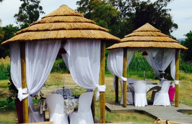 Paillote exotique ronde sur 4 poteaux en pin traité.