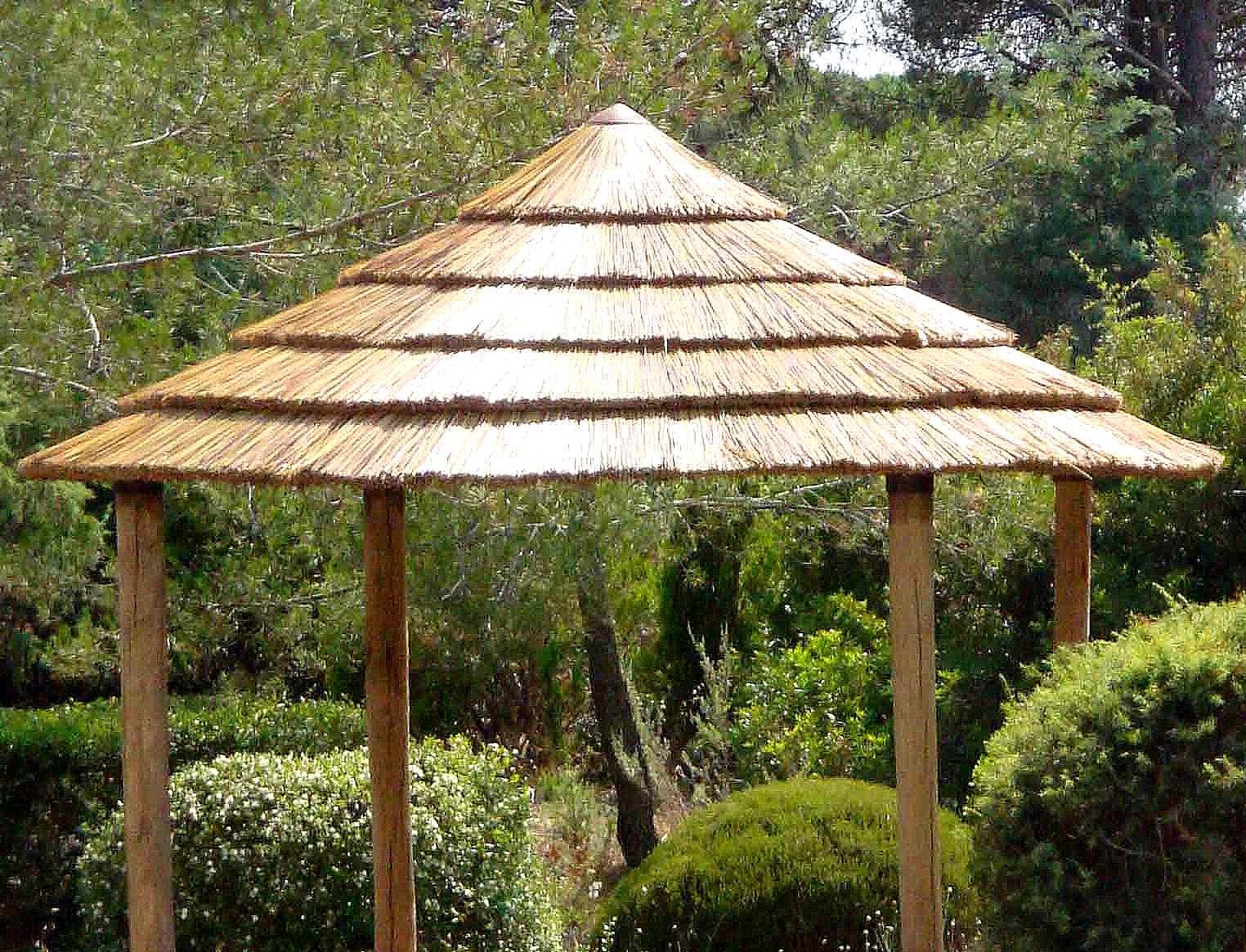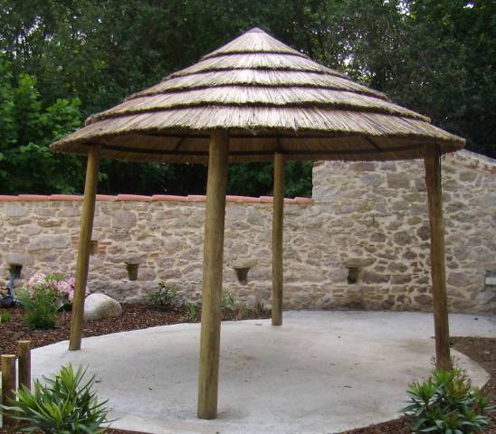 Paillote exotique ronde sur 4 poteaux en pin traité.