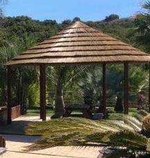 Paillote exotique ronde sur 6 poteaux en pin traité.
