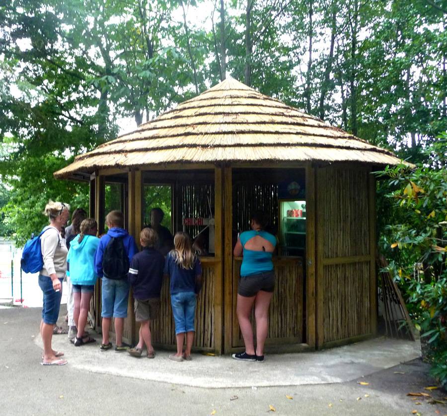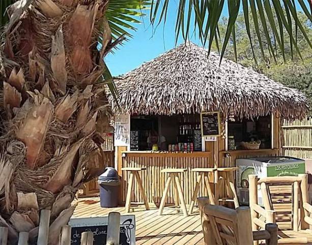 Se compose de 7 demi-panneaux comptoir + 1 demi-panneau porte et comptoir avec toiture en roseau ou palme Ø 5 m.